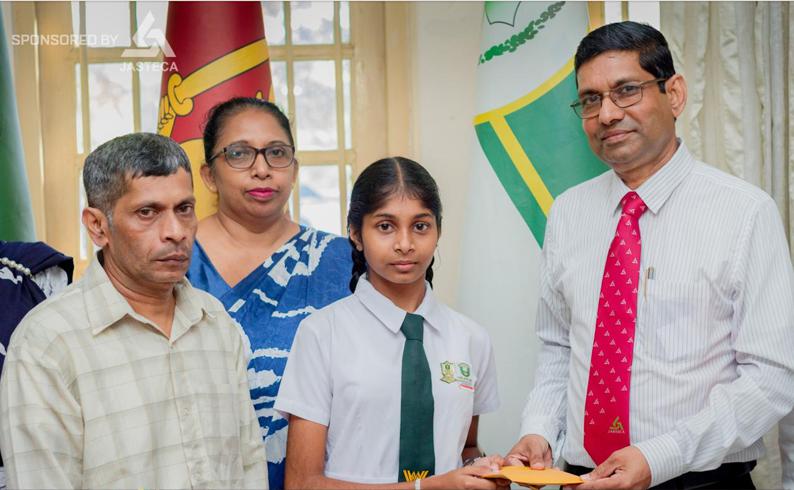 Madam Ogawa, Mr. Edirisinghe (President of JASTECA) and Mr.Dayasiri Warnakulasooriya (Vice Patron of JASTECA) presenting a scholarship and a gift.